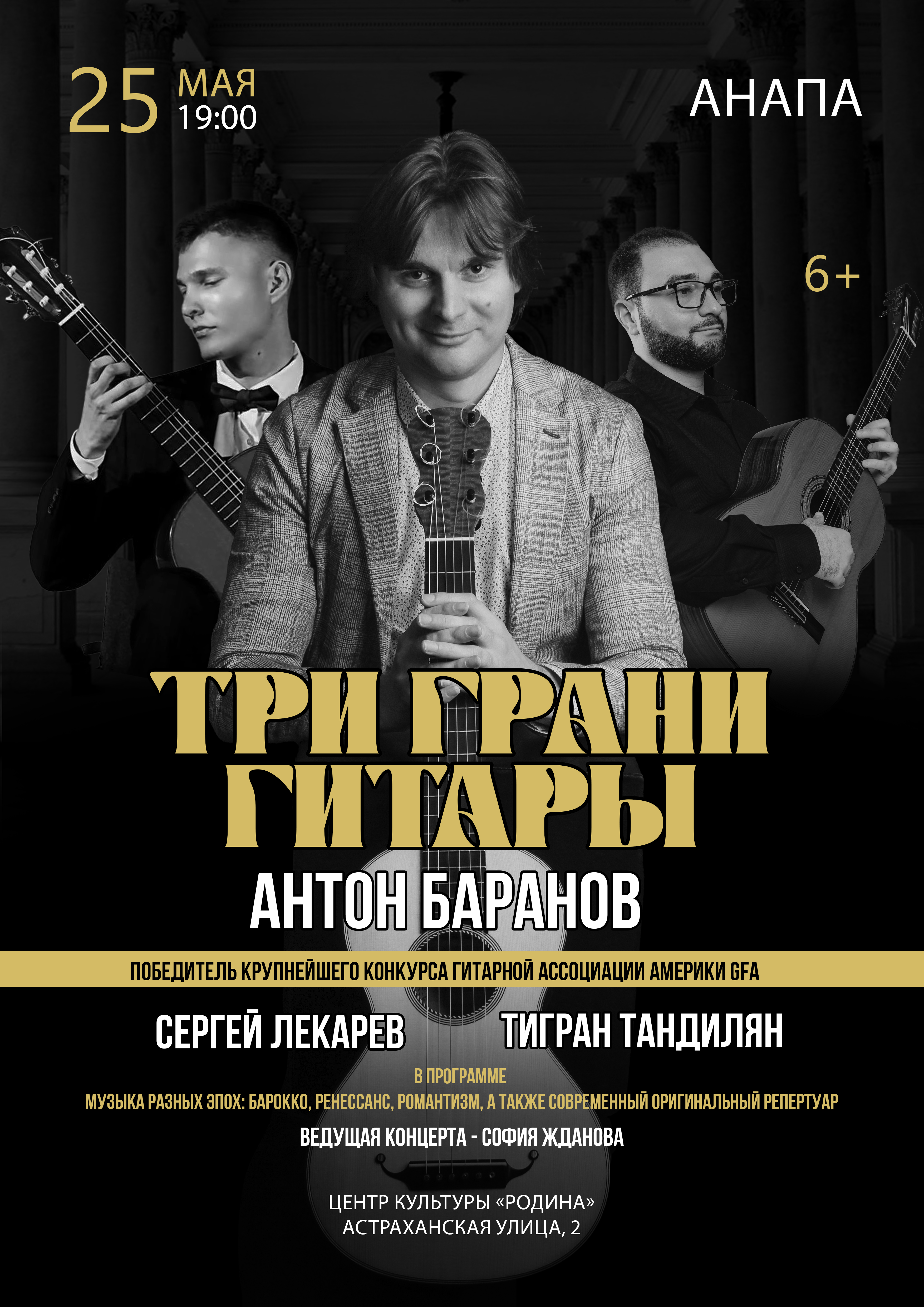 Антон Баранов: Его игра — подлинное волшебство» — именно так американское музыкальное обознение Cleveland Classical охарактеризовали игру гитариста Антона Баранова во время его гастролей по Северной Америке в сезоне 2014-15 года. Призовые места в многочисленных конкурсах исполителей на классической гитаре в России, Европе (Германия, Франция, Италия, Испания, Лихтенштейн, Сербия), Ближнем и Дальнем Востоке (Израиль, Япония), Южной и Северной Америке(Парагвай, США) принесли музыканту известность и ангажементы в самых престижных залах мира, среди которых Карнеги Холл в Нью Йорке, New World Center в Майами, Палау в Валенсии, Столетний зал Пекинского университета и многие другие. Своебразной кульминацией конкурсной карьеры Антона Баранова стали победы сразу на двух значимых и, по мнению многих музыкантов — самых престижных гитарных конкурсах: имени Франциско Тарреги в Испании и конкурсе Гитарной Ассоциации Америки (Guitar Foundation of America). Среди обширной географии концертов гитариста в РФ следует отметить выступления на самых значимые концертных площадках обеих столиц: Концертный зал им. Чайковского и Международный дом музыке в Москве, Малый зал академической филармонии и Концертный зал Мариинского театра в Петербурге. В качестве студийного музыканта Антон выпустил два альбома: четыре латиноамериканские сонаты на канадском лэйбле Naxos и диск, представляющий испанскую музыку первой половины 20-го века на студии Contrastos Records в Испании.